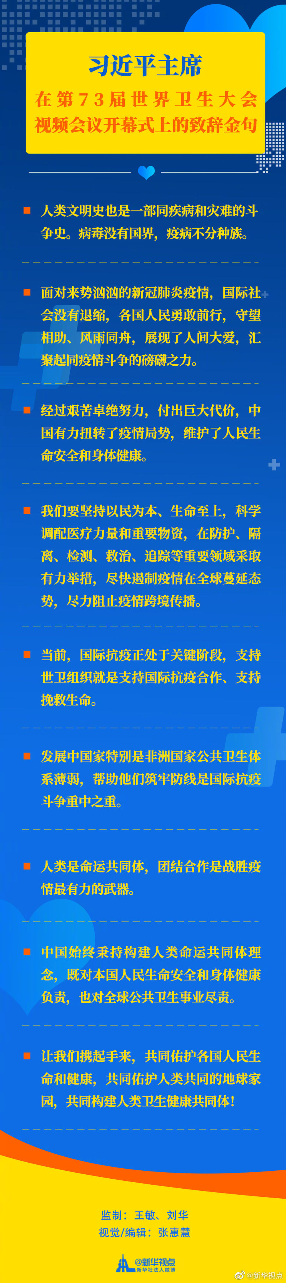 首先,我认为,在人类抗击新冠肺炎疫情的关键时刻举行这次世卫大会,具有十分重要的意义!