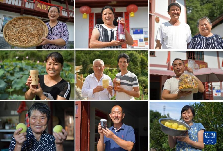 拼版照片:这是江西省井冈山市神山村村民的笑脸合集(2020年7月15日摄)。地处山区腹地的神山村曾是江西省井冈山市最偏远的贫困村之一,贫困发生率曾达30%以上。当地通过发展扶贫产业和乡村旅游,村民收入显着增加,并在2017年2月正式脱贫。新华社记者彭昭之摄