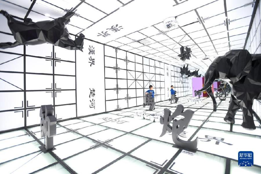 2019年9月21日,小朋友在湖南省长沙市“字在其中”汉字国潮艺术展上参观。新华社记者陈泽国摄