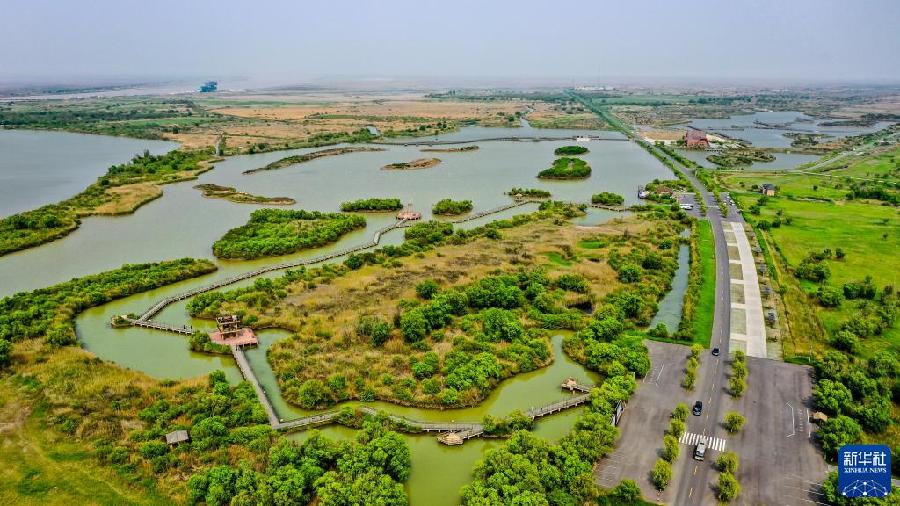 这是5月13日拍摄的山东黄河三角洲国家级自然保护区景色(无人机照片)。新华社记者郭绪雷摄