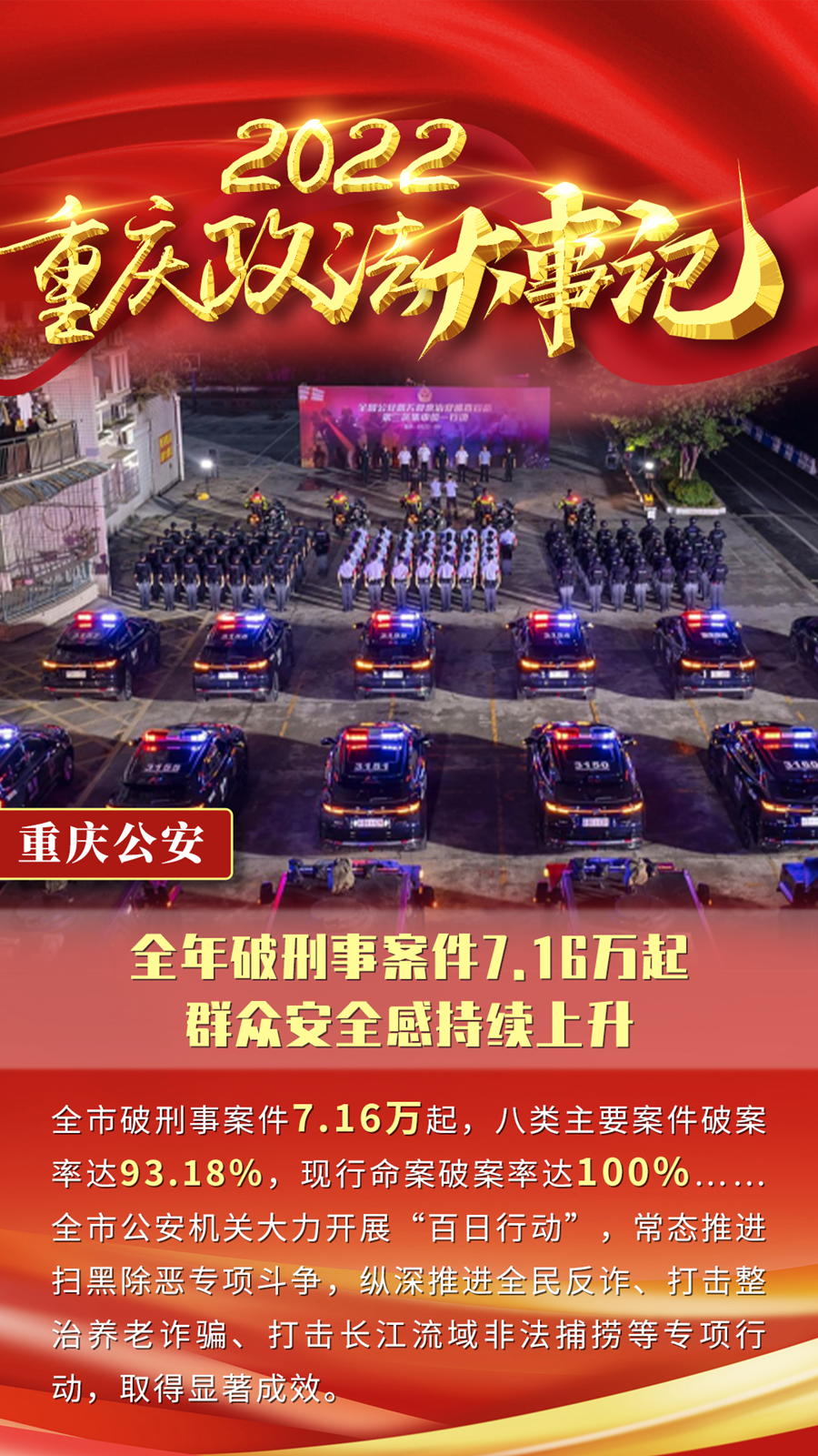 深入学习宣传贯彻党的二十大精神,坚持党对政法工作的绝对领导,坚持统筹发展和安全两件大事,全力履行职责使命……刚刚过去的2022年,重庆政法工作交出了一份沉甸甸的答卷。