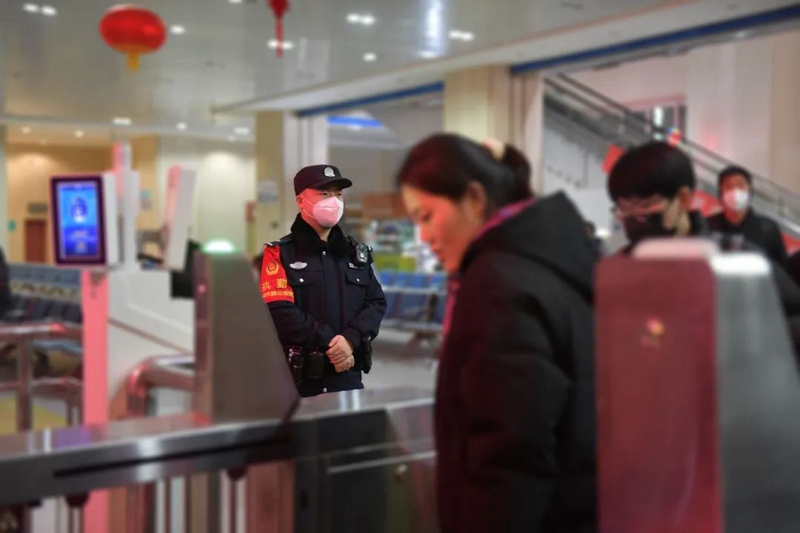 2023年春运期间,武威公安处武威车站派出所民警石泉对进出站口闸机开展盯控。